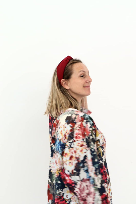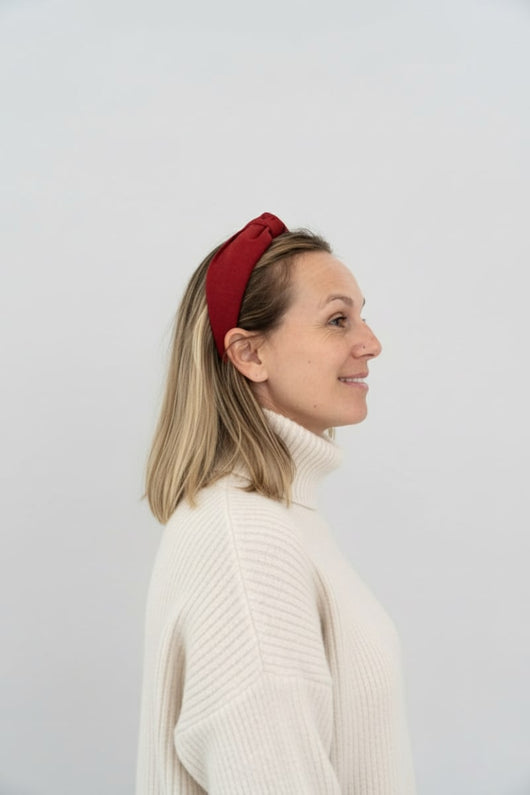 Nuestra diadema nudo granate está hecha a mano, de forma lenta y artesanal.